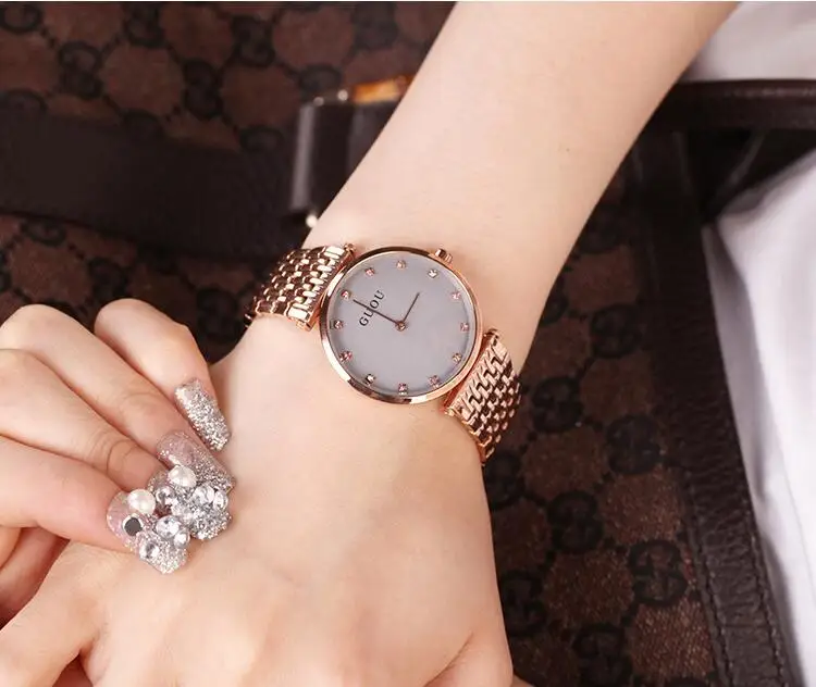 Best Quality 2018 Guou Luxury Brand Steel Watch Fashion Rose Gold Girl Watches Women Man Size Quartz Ladies Dres