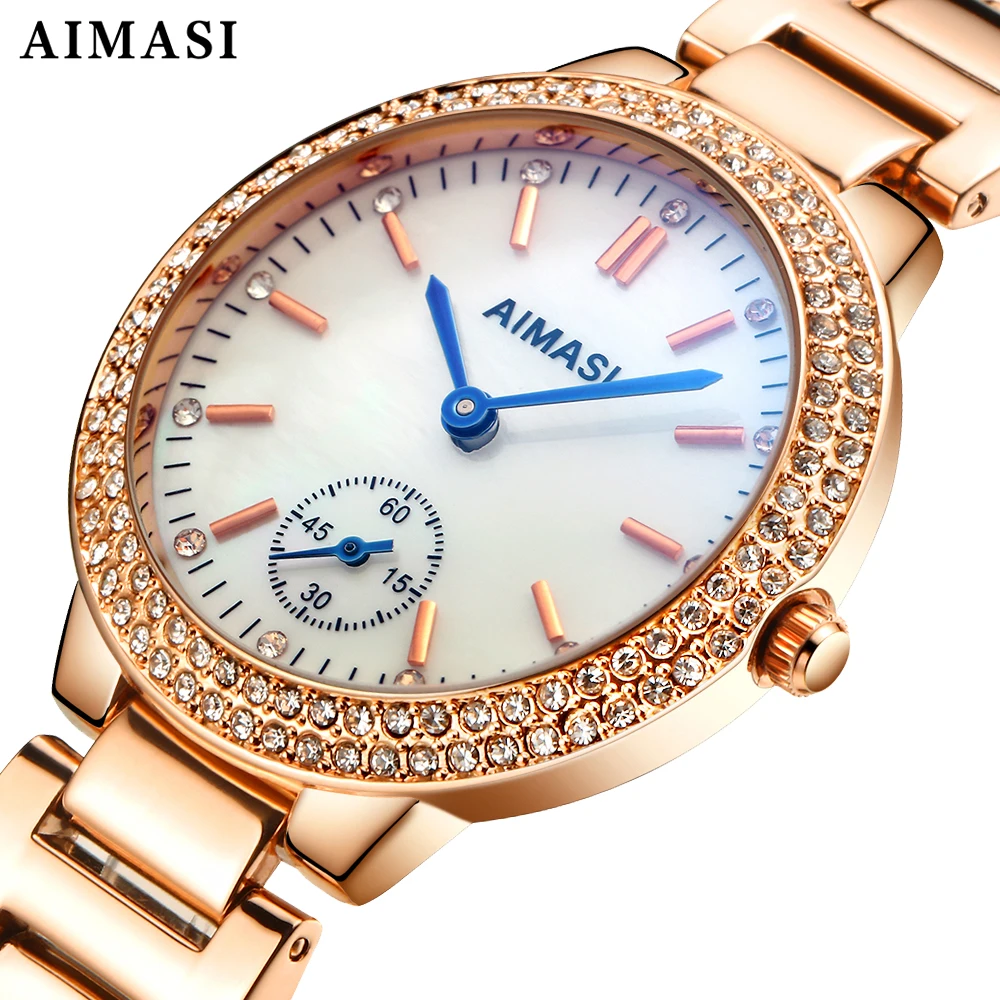 Review Top Fashion Aimasi Brand Hot Sale Women's Casual Watches Ladies Luxury Bracelet Stainless For Women Ros