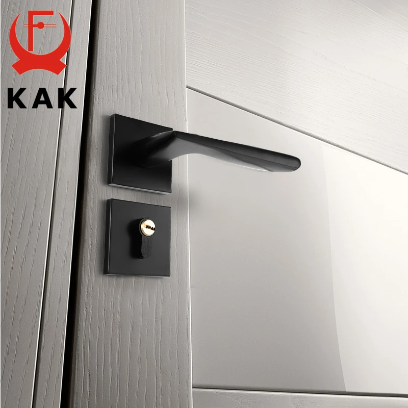 BEST QUALITY KAK Mute Black Door Lock Aluminium Alloy Interior Door Lock Handle Modern Anti-theft Room Wood Door