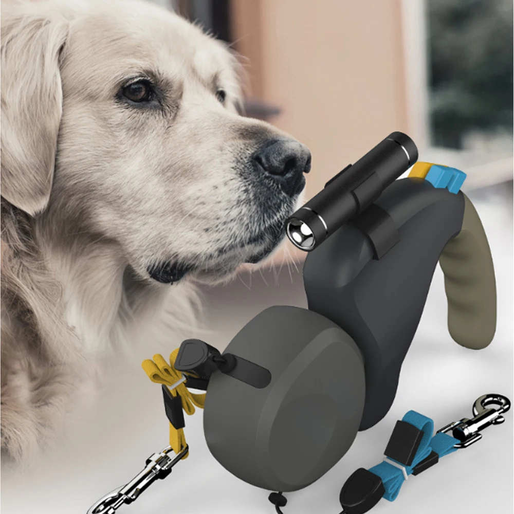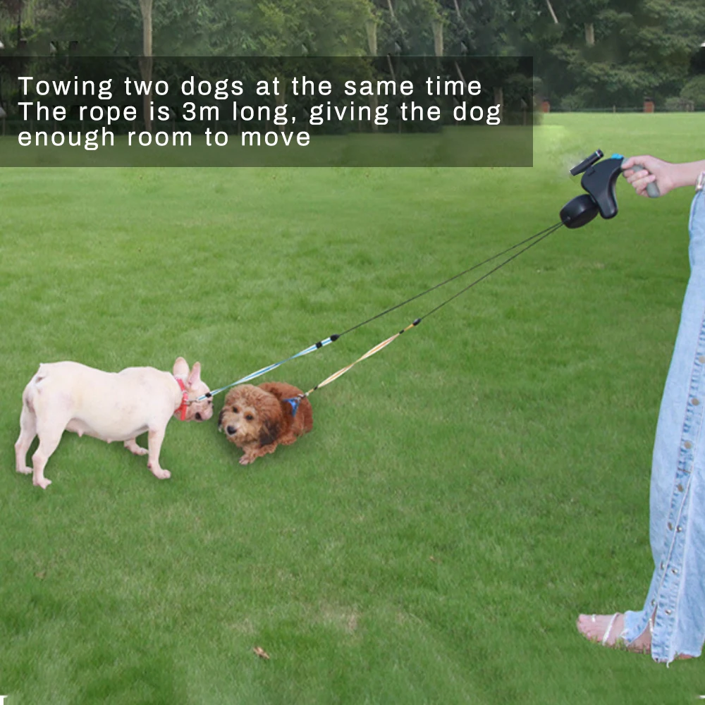 BEST SELLER 1 PC Double Retractable Auto Dog Leash With LED Light 360 Degree Dual Pet Leash Handle Locked